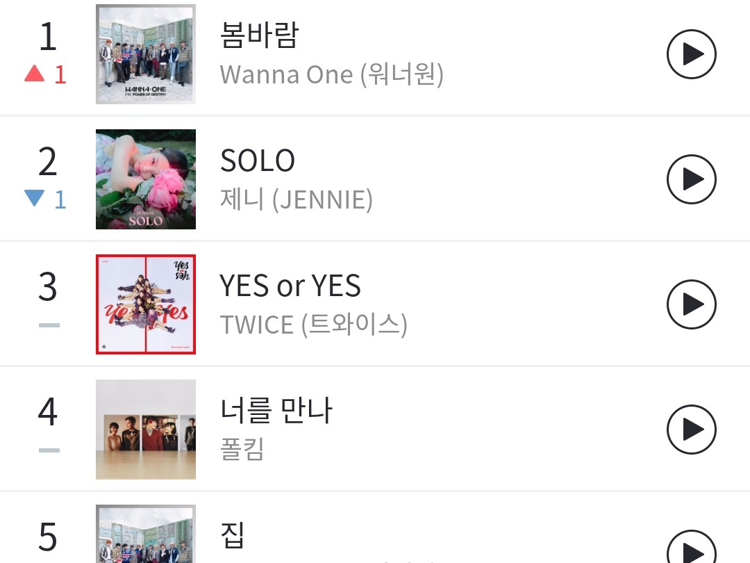 다음으로 벅스뮤직 인기차트! 2위와 6위 yes or yes 말곤 여기도 계속 워너원 곡~