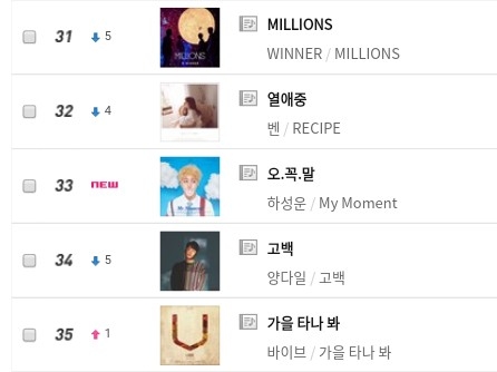 벅스는 다 순위가 높아서 좋네요!