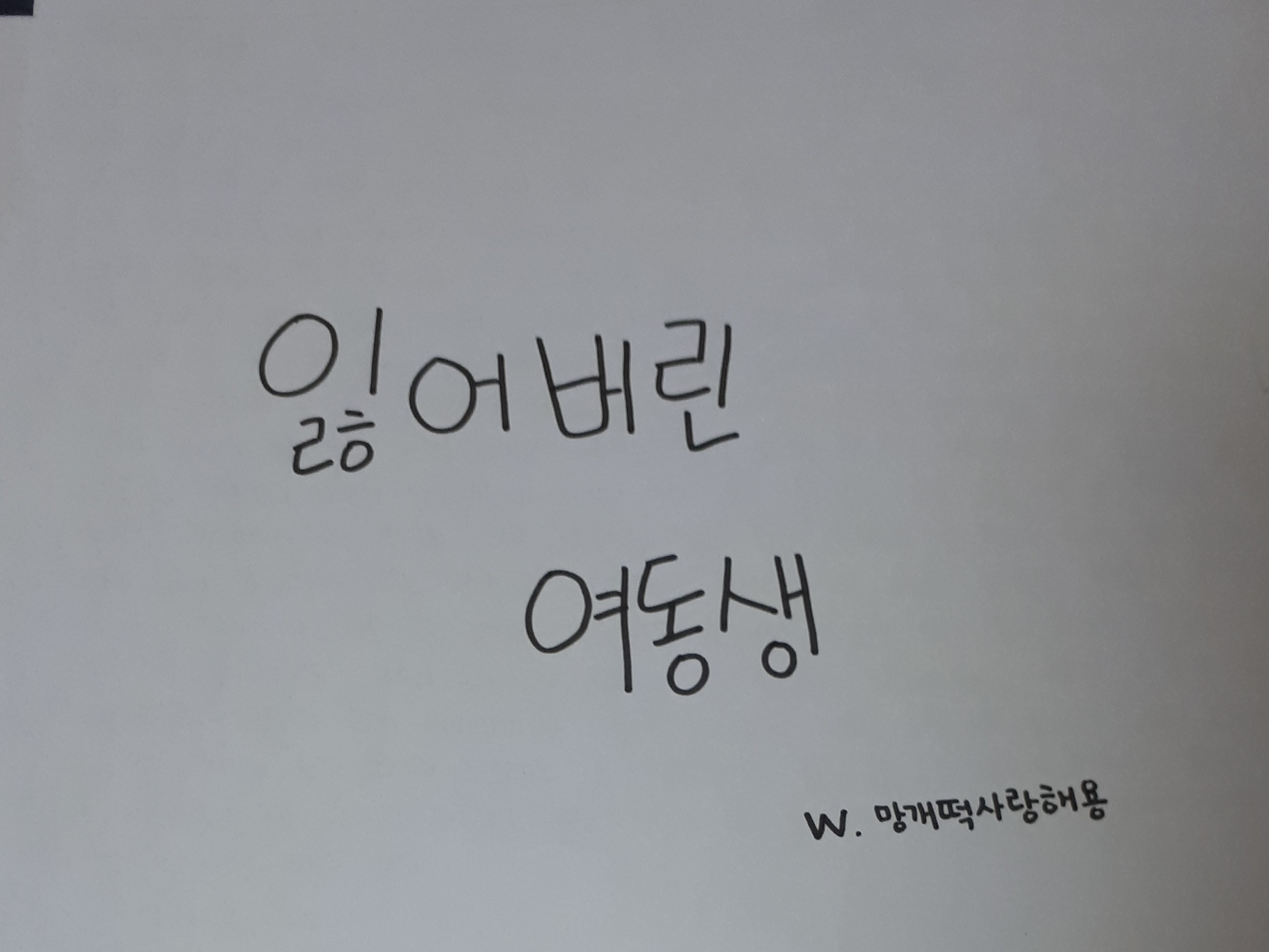 <잃어버린 여동생> 2020년도 쯤에 먼저 소설 버전으로 낼 생각입니다^^조금 바뀌었습니다.음..일단은 남존여비사상입니다^^(참고로 말씀드리자면 원래 팬픽에서도 딸바보,동생바보 컨셉이였는데 그 컨셉은 그대로 유지 됩니다)지금 작간 열필중~^^