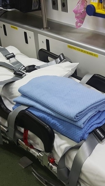 그리곤 구급요원에게 들은 대로 고개를 옆으로 돌리고 다리 밑에 옷들을 쌓아서 다리가 위로 향하게 했다.