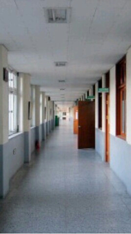 복도 끝에서 준면이가 벽쿵을 하는 상황