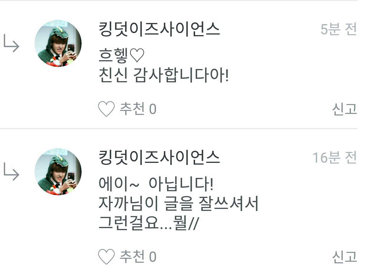 킹덧이즈사이언스님!댓글을 이렇게 달아주셔서 감사해요!♥