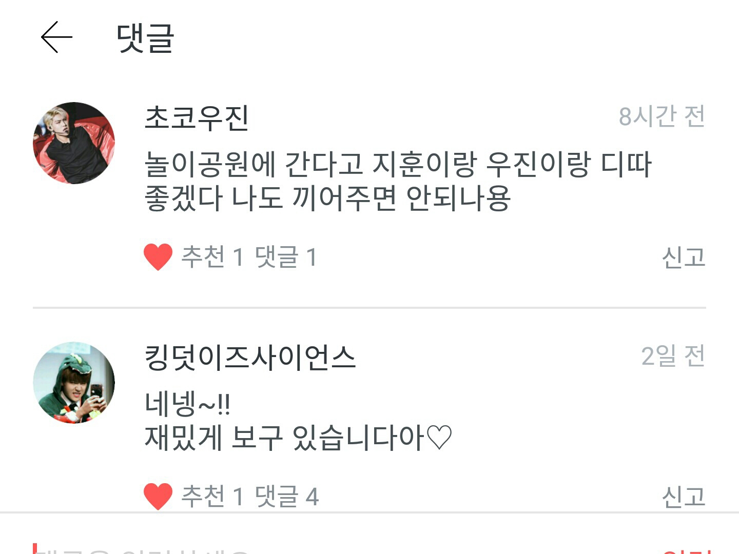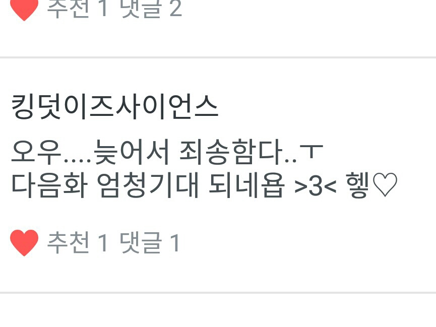 댓글이 늘었구요ㅠㅠㅠ넘나 사랑해요 초코우진님 킹덧이즈 사이언즈님!