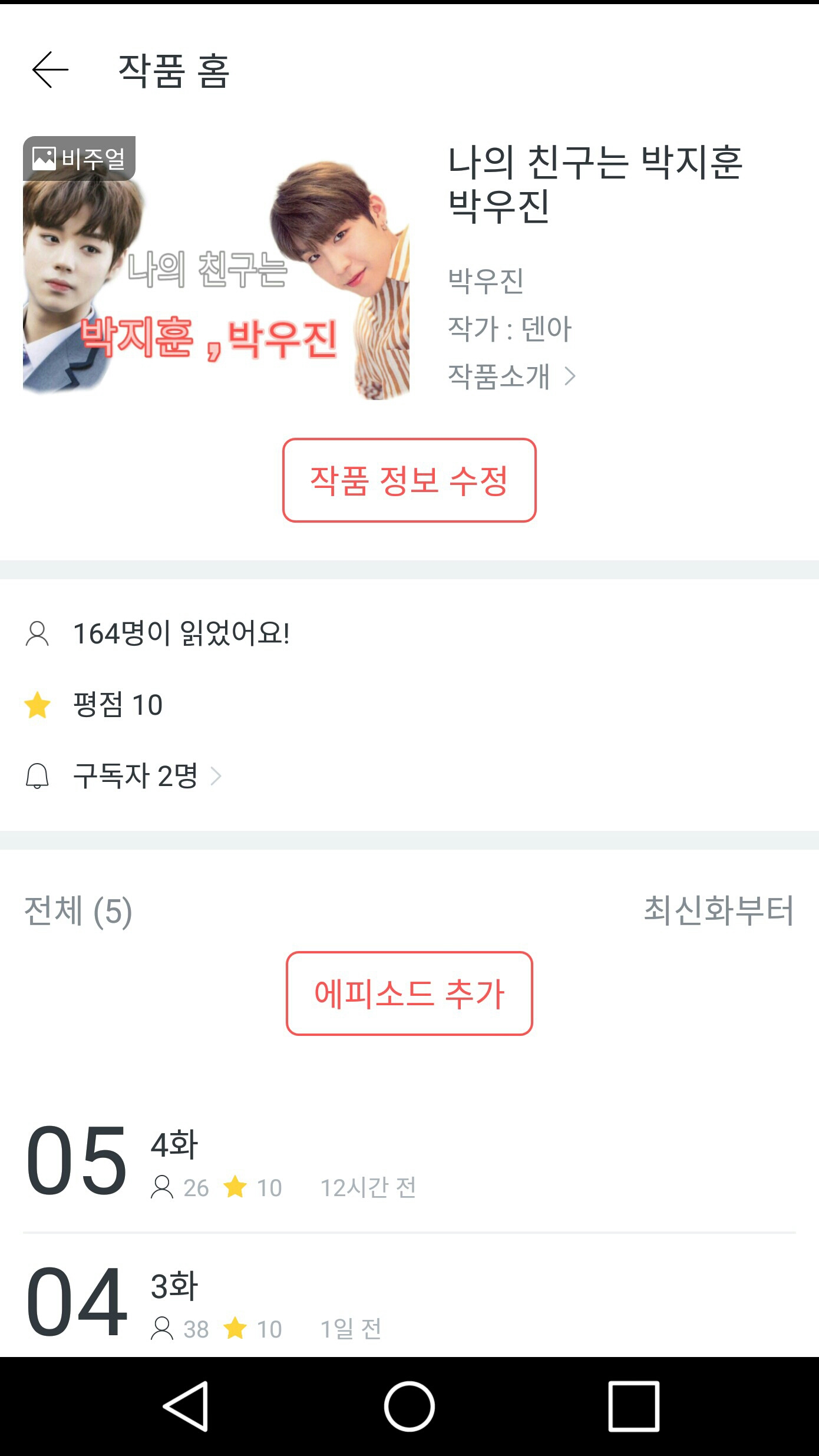 나의 친구는 박지훈 박우진(화,금 연재)