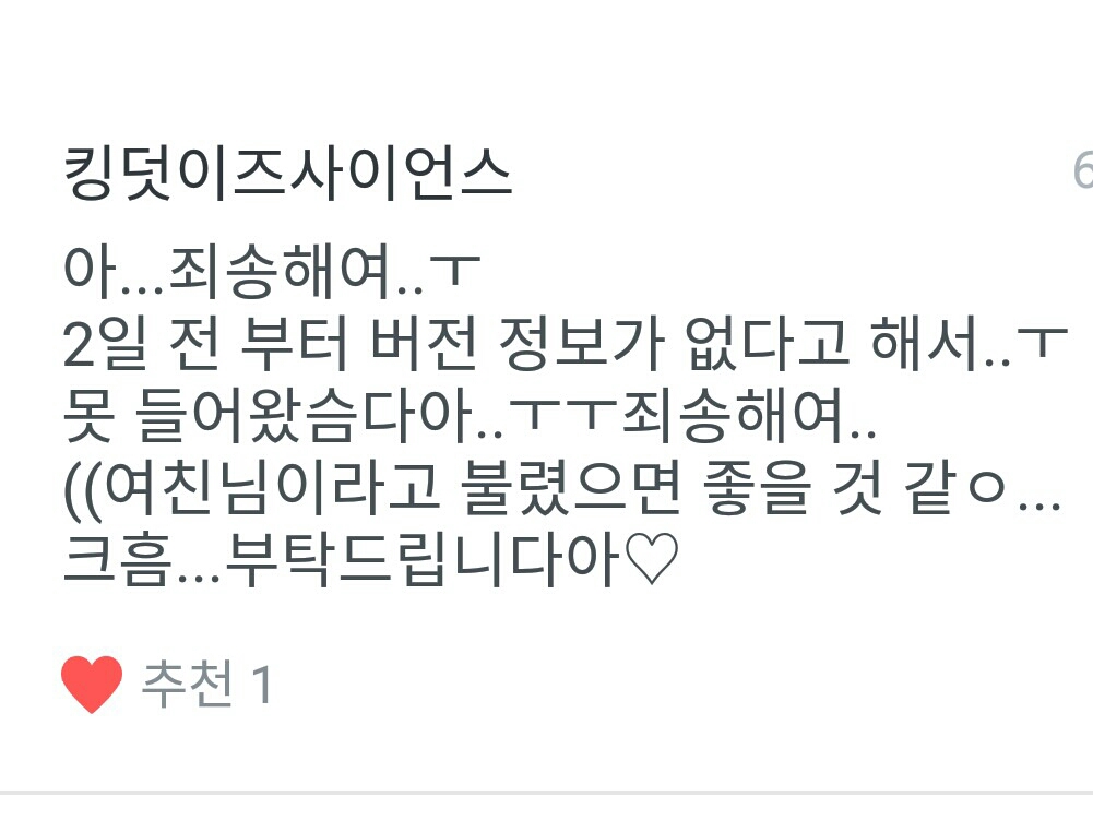오늘 주인공은! 킹덧이즈사이언스님 이였습니다!