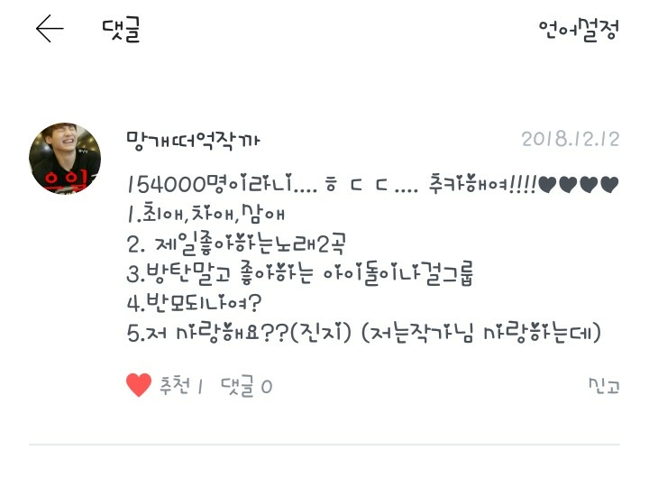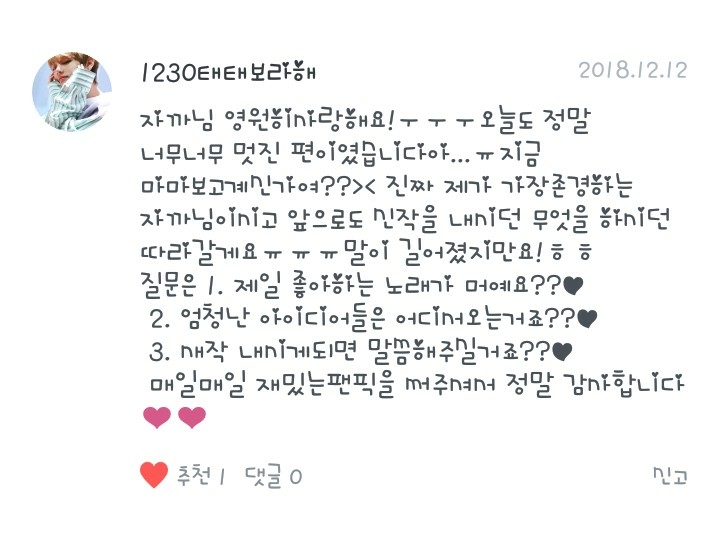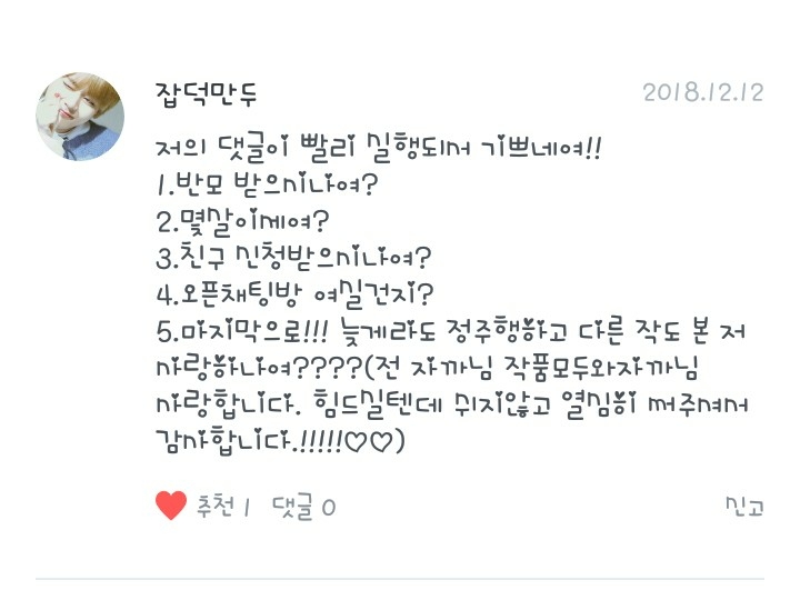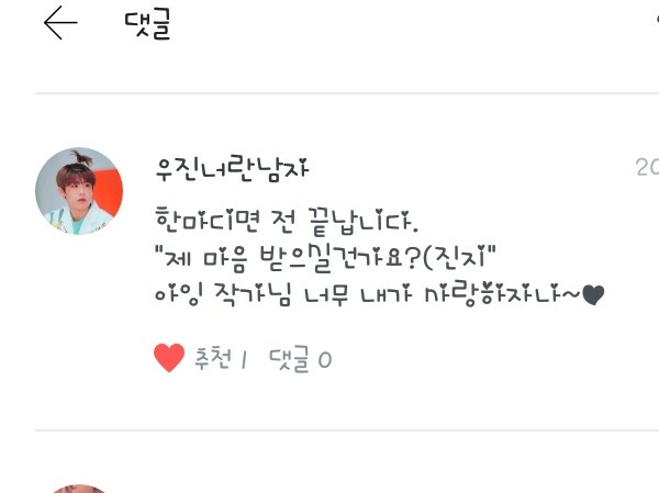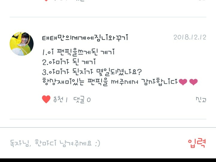 팬픽은...댓 써주시는 분들거 다 잼있어여!읽으면서 구독했거든요!