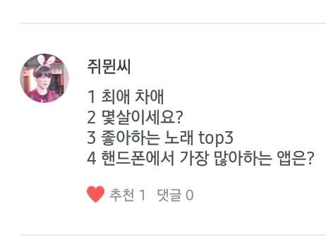 쥐뮌씨 님께서 질문을 남겨주셨네여