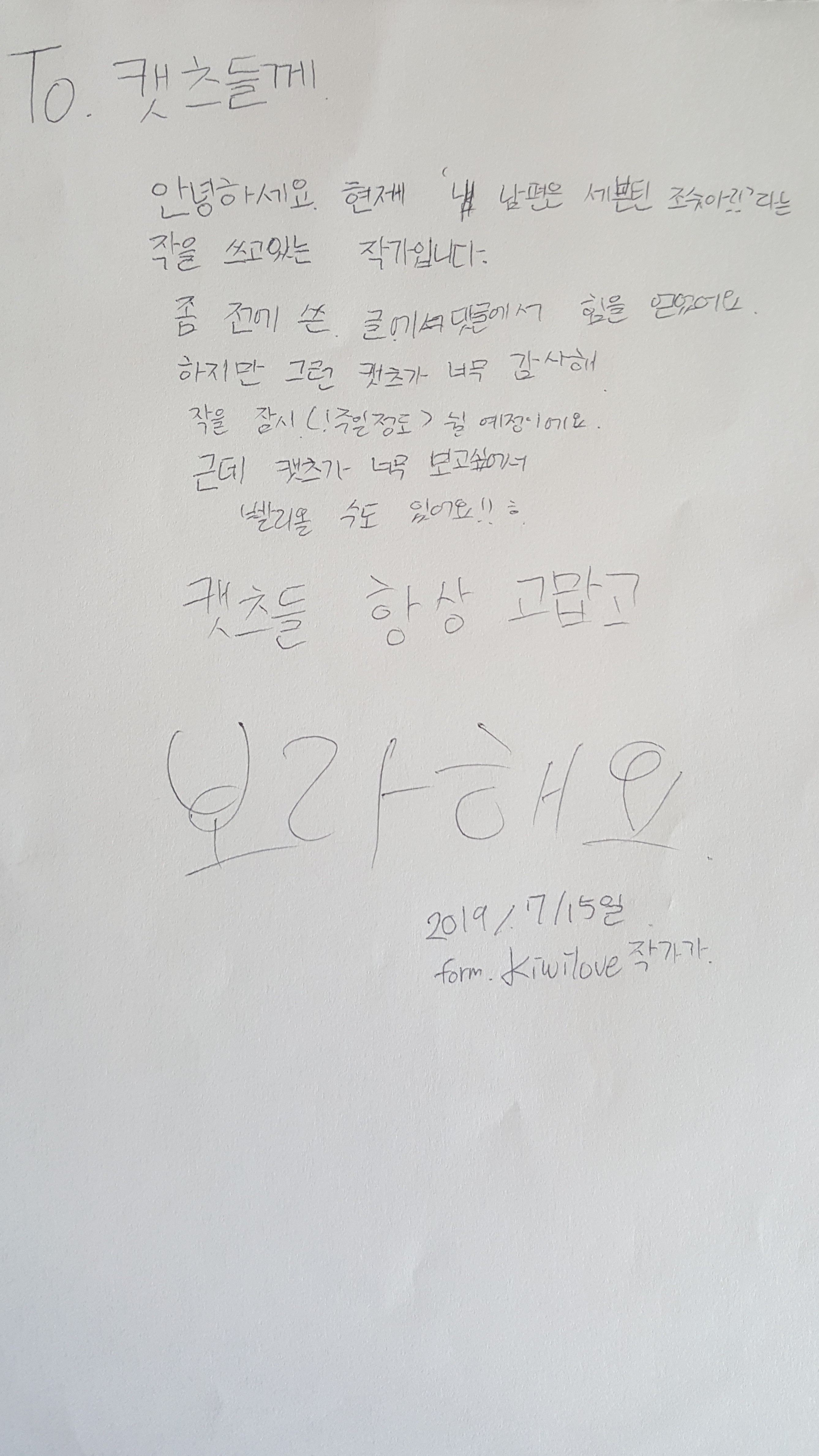 편지에요!!캣츠 봐주세요!!