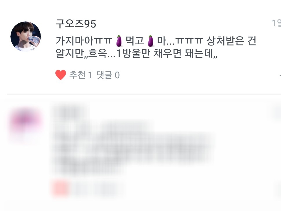 앜ㅋㅋㅋ 가지 먹고 가지 말라구요? ㅋㅋㅋㅋ😂😂 귀여우세요 ㅋㅋㅋㅋ 한방울만 남았네요💜 댓글 감사합니다🙏💜