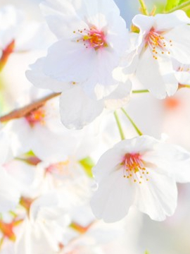 벚꽃이 푸른 하늘 아래 흩날린다.