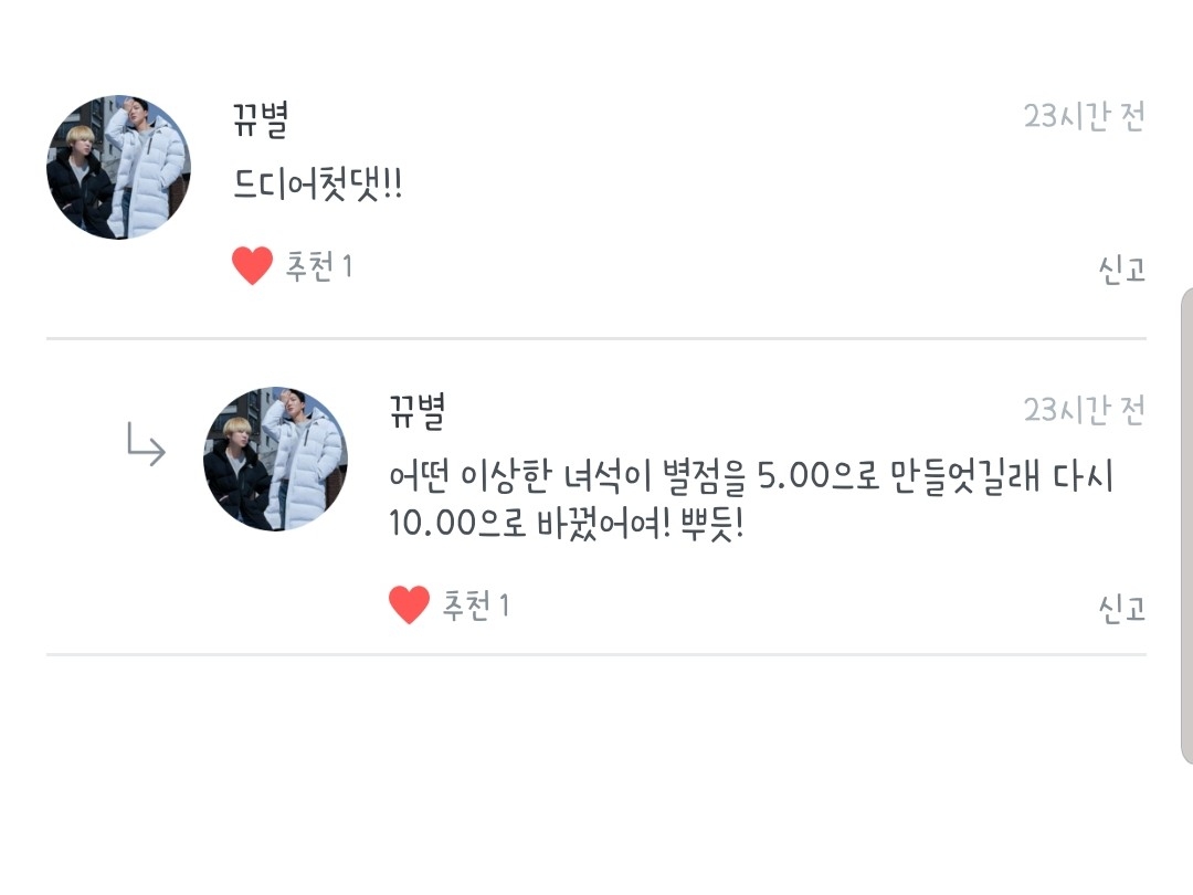 1등이셔요!!! 뀨별님 1등 추카드려용 그리고 감사합니당!!💜💜💜💜