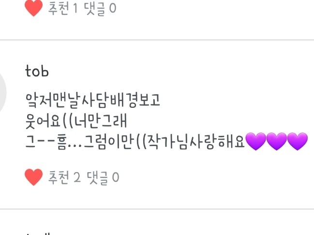 tob님! 베스트댓글 축하해용!! 저두 사랑합니당!!💜