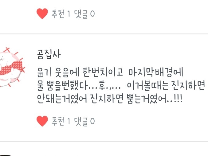 곰집사님! 베스트댓글 축하해요!!💜 진지하면 뿜는..ㅋㅋㅋㅋㅋㅋㅌ