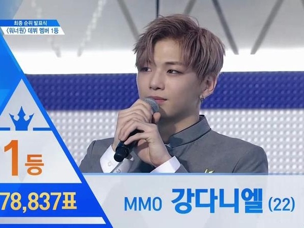 1등:강다니엘 2등:박지훈 3등:이대휘 4등:김재환 5등:옹성우 6등:박우진 7등:라이관린 8등:윤지성 9등:황민현 10등:배진영 11등:하성운