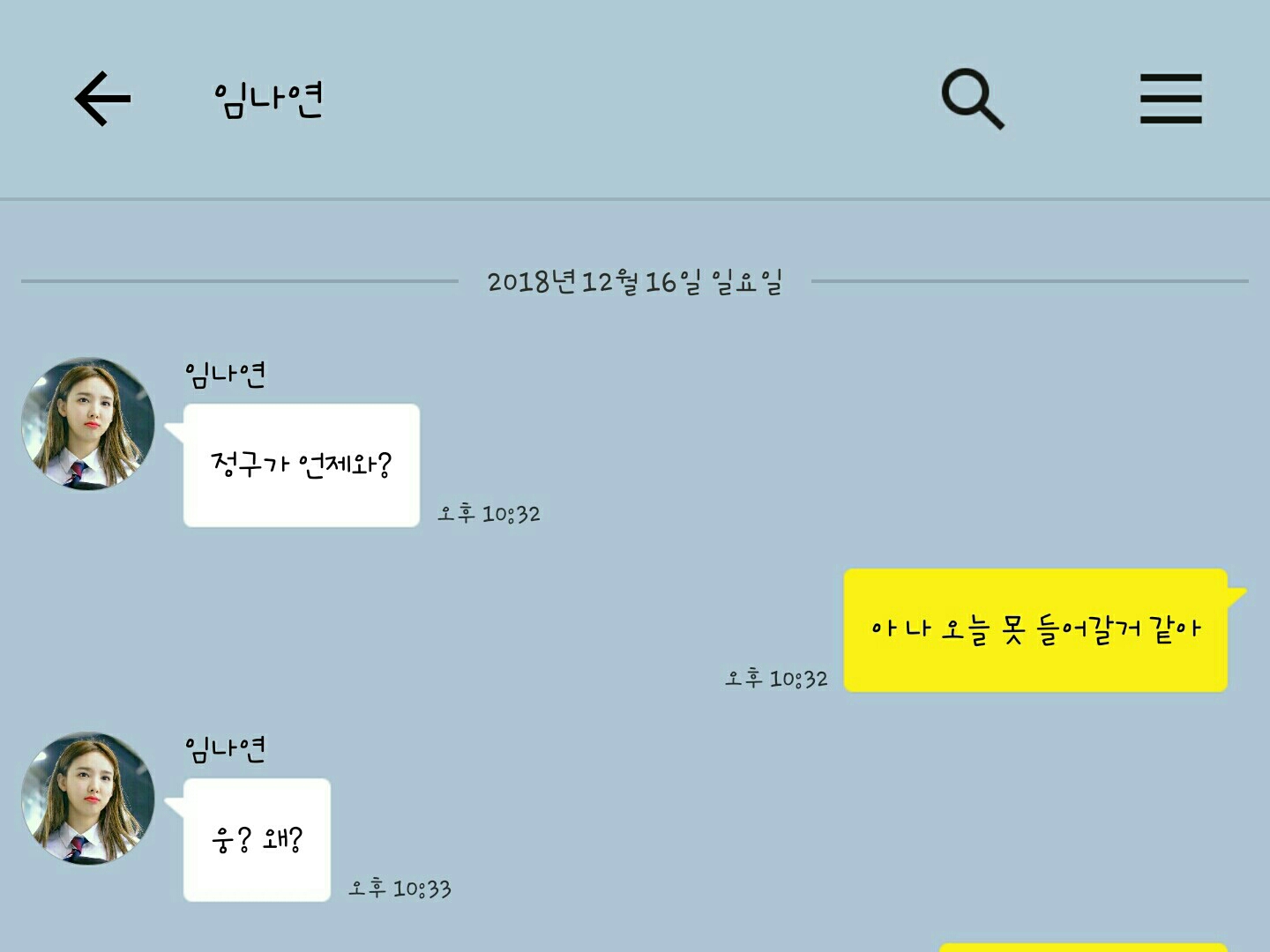임나연한테 카톡을 보냈다