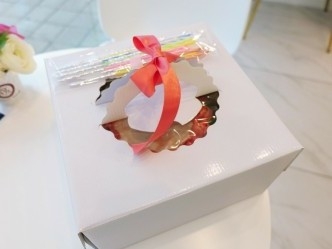 케잌을 꺼내자 안쪽에 있었던건지 바닦에 떨어지는 한 쪽지,