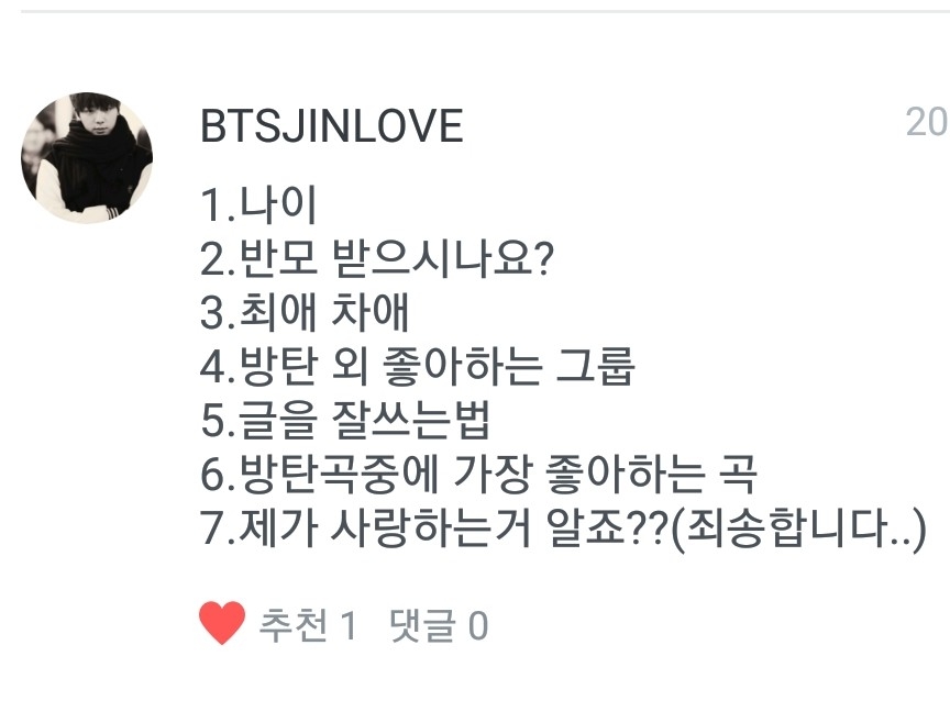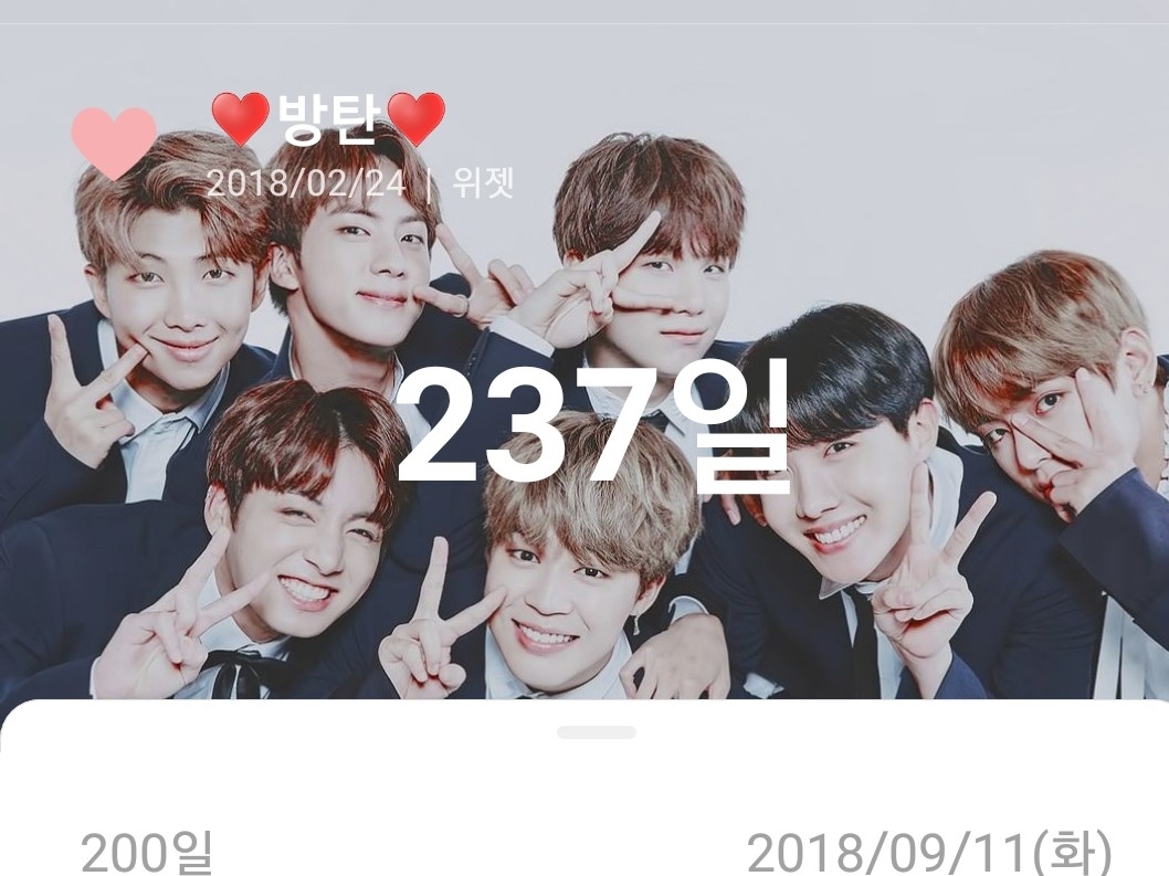 오늘 입덕한지 237일째 입니다! 애들이 저 입덕한 다음에 방탄얘기 밖에 안한다고 변했다고 그러더군요....후훗!