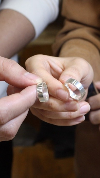 두분 너무 보기 좋네요~ ㅎ 그럼 여기 사이즈 맞는거 가져가셔서 다듬으시고 이니셜 또는 큐빅 박으시면 됩니다!