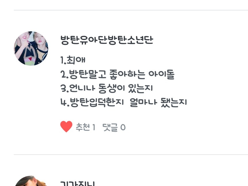 2.방탄말고 좋아하는 아이돌이라면..흠..