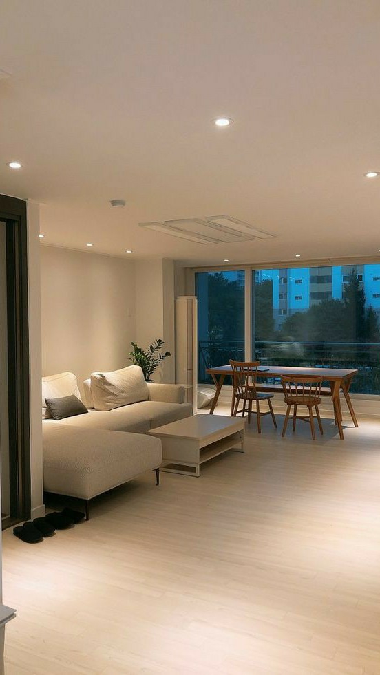 _웃는 표정도 잠시, 뭔가 떠오른 듯 정국의 손목을 잡고 거실로 그를 데려오는 여주.