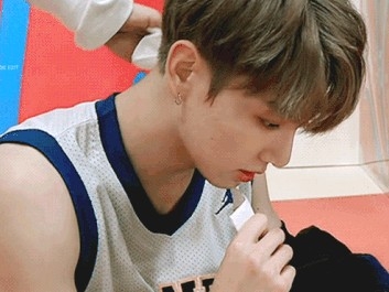 _기다렸다는 듯, 들어오자마자 마스크와 모자를 동시에 벗어서 책상에 두는 정국.