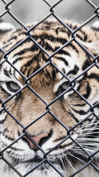 호랑이 우리로 가까이 다가가는 호시