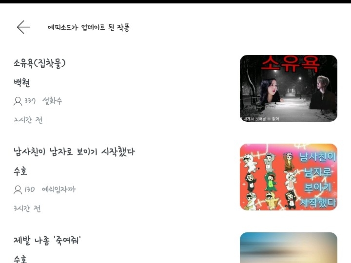 에피소드가 업데이트 된 작품에 첫번째로 제 작품이 있잖아요ㅠ