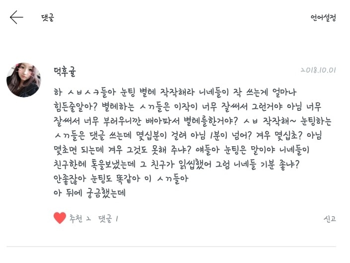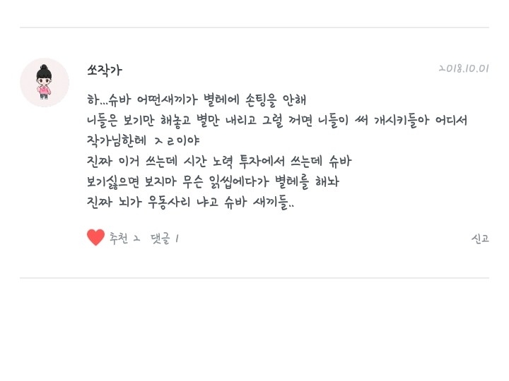 언니들은 당장 내 팬픽에 별태 그만하라는 항의글(?)을 올렸고