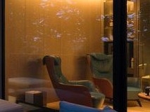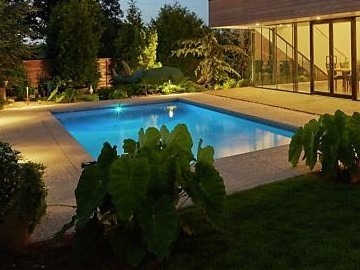 그 앞에 유리창을 통해 보이는 큰 수영장이 보이자