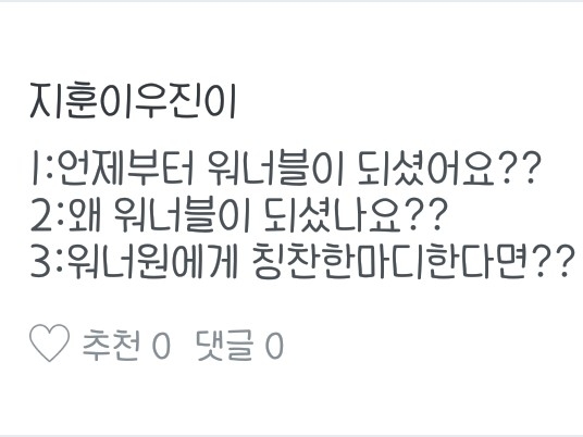2.왜 워너블이 되셨나요? (잘생기고 노래,랩,댄스 모두 실력이 좋아서요!)