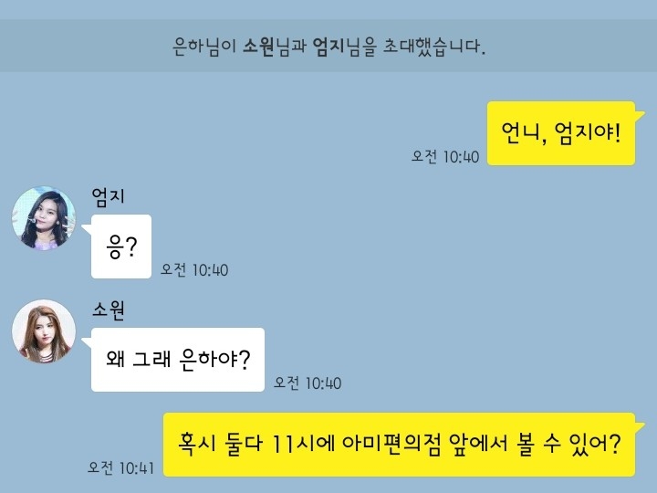 "혹시 둘다 11시에 아미편의점 앞에서 볼 수 있어?"