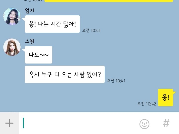"잉땅 소워어니라 언지항케 무러바야게아 (=일단 소원언니랑 엄지한테 물어봐야겠다)"