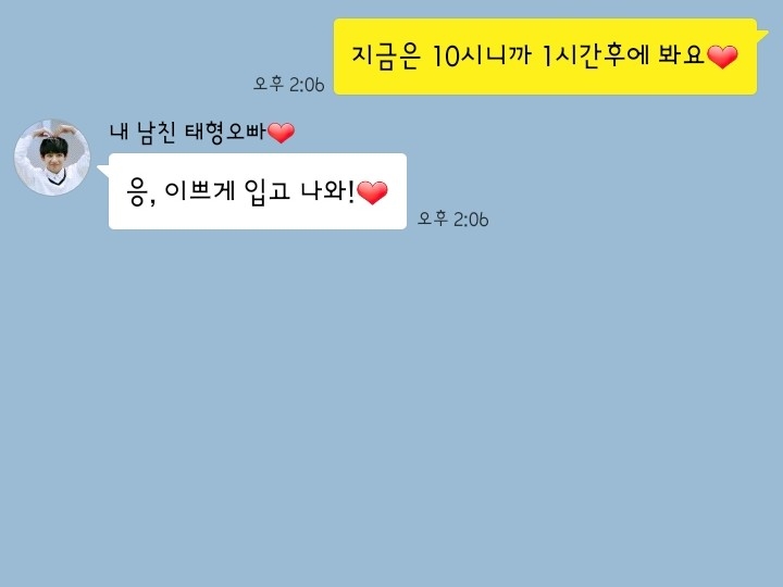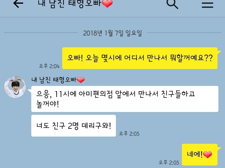 "오빠! 오늘 몇시에 어디서 만나서 뭐할꺼예요??"