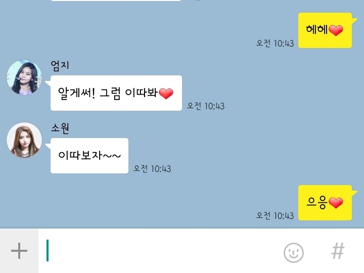 "알게써! 그럼 이따봐❤"