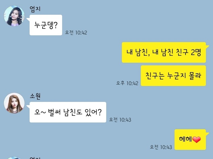 "헤헤.. 오빠랑 카톡할때는 언제나 설레는거 가타..❤"