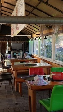 우리 저거 먹으러가면 안돼요?(해안뷰가 보이는 조개구이집을 가르킨다)