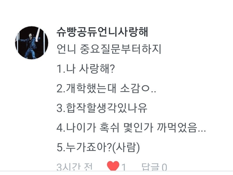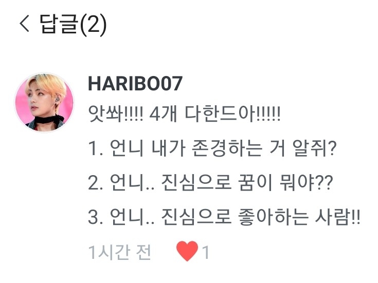 1.당연하징ㅋㅋㅋㅋ 2....뭐? 3.나두❤