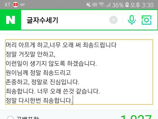 사과문 1000자를 쓰는데 40분 넘게 기다렸습니다