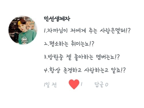 5. 최애는 정국오빠, 차애는 ... (고민) ..윤기오빠 삼애는 호석오빠여..