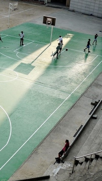 우리는 점심먹고 운동장에있었다.