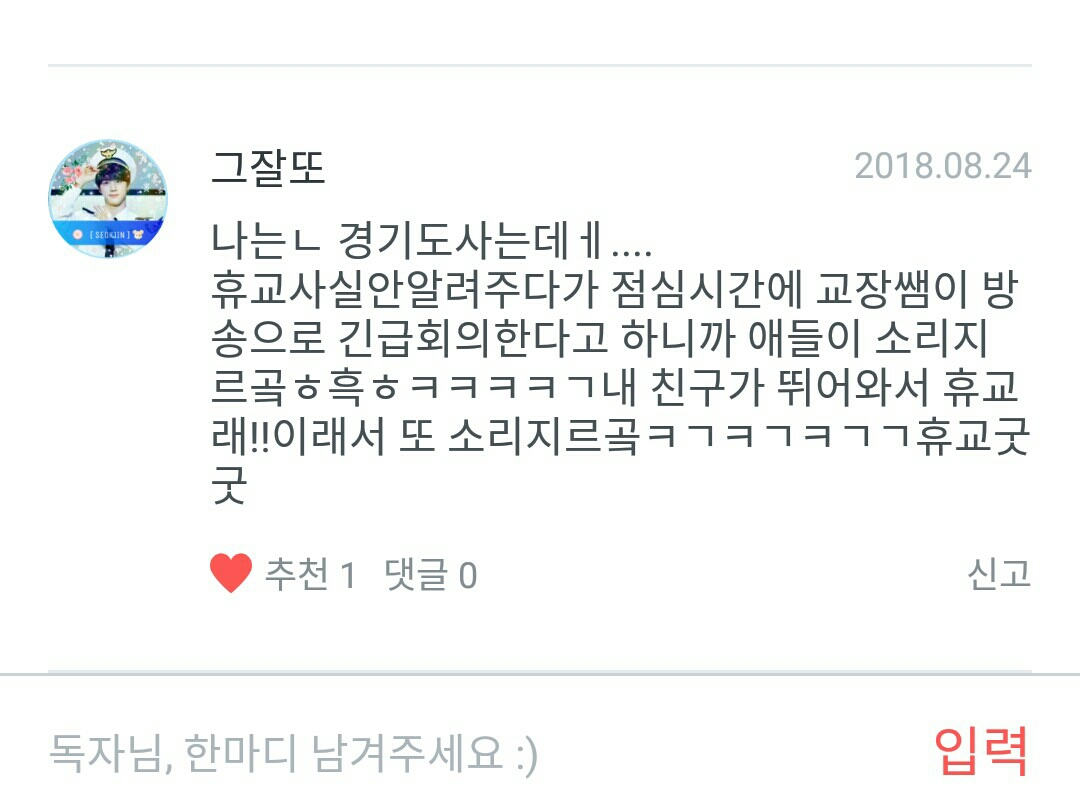 휴교 조오치! 조하아좋아 좋아좋아!