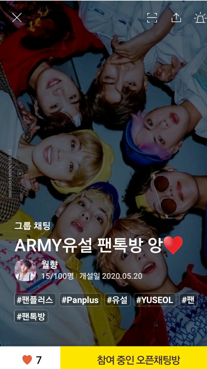 ARMY유설 팬톡방 앙❤을 치시면 되요!