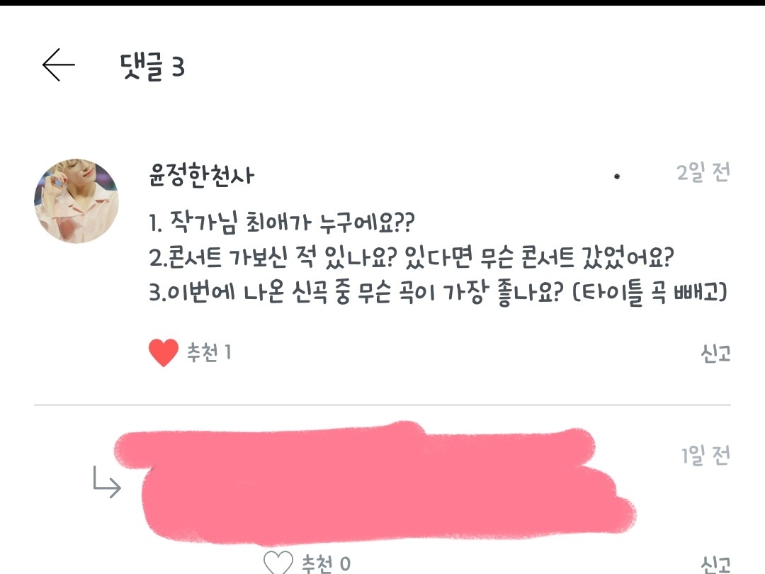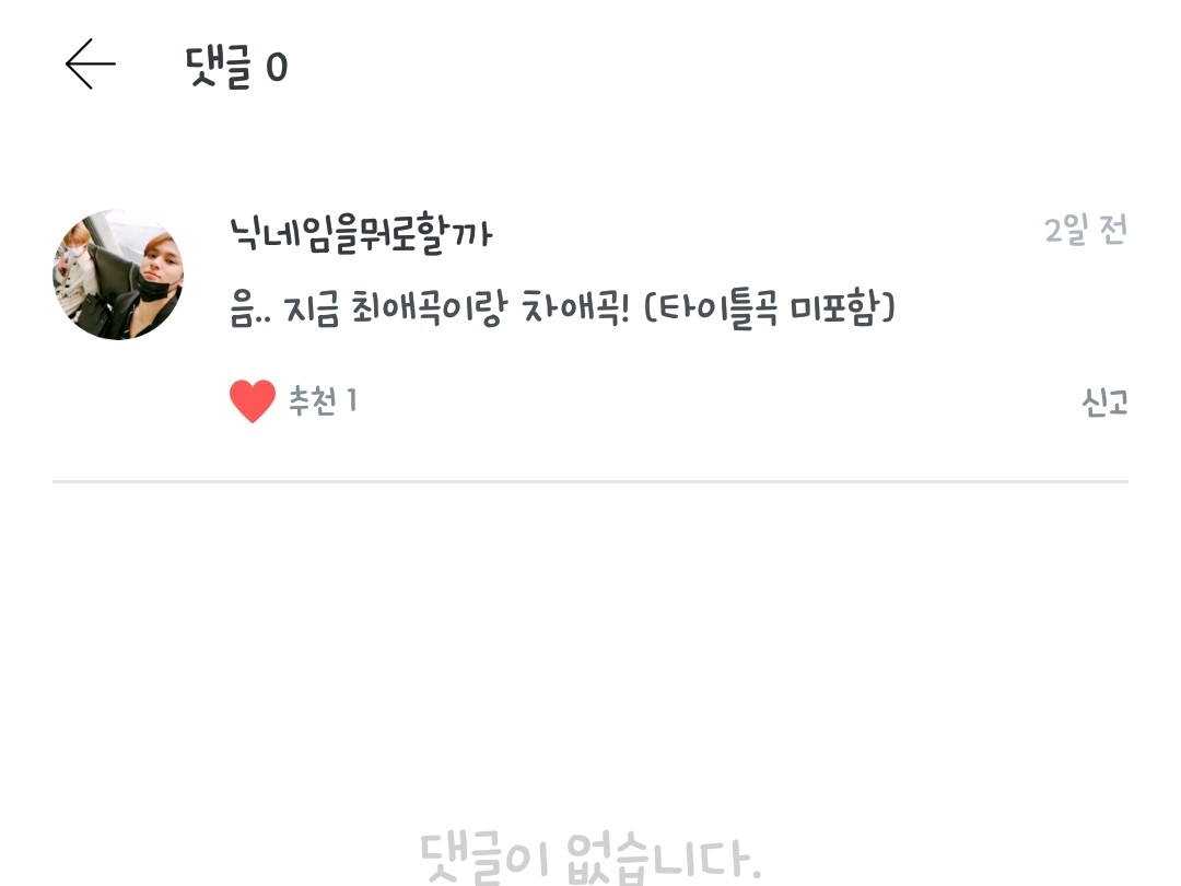 내 최애곡은 20이구 내 차애곡은 샤다♡