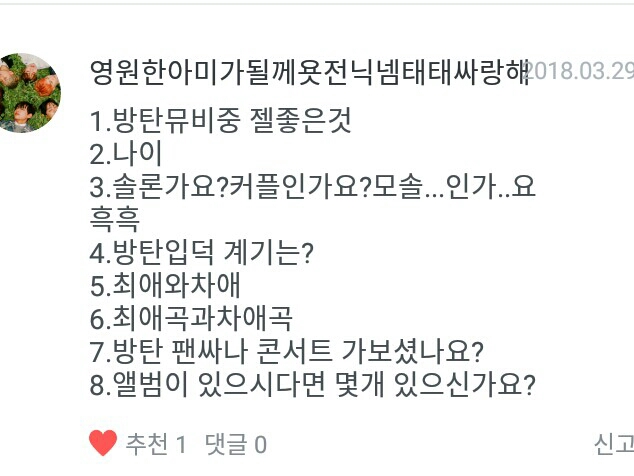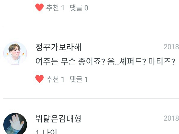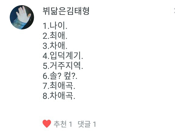 뷔닮은김태형님♥ 이미 답변했던 질문이라서 패스할께요♥