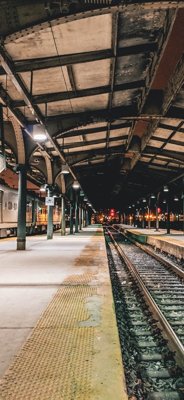 그녀가 타야 할 기차가 도착했다.