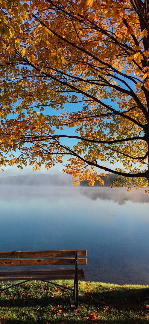 그들은 호숫가 근처 벤치에 앉았다.
