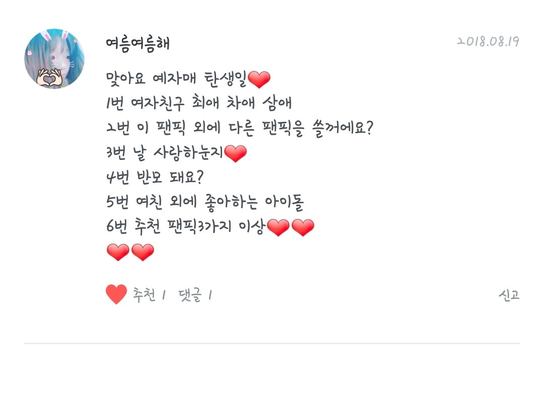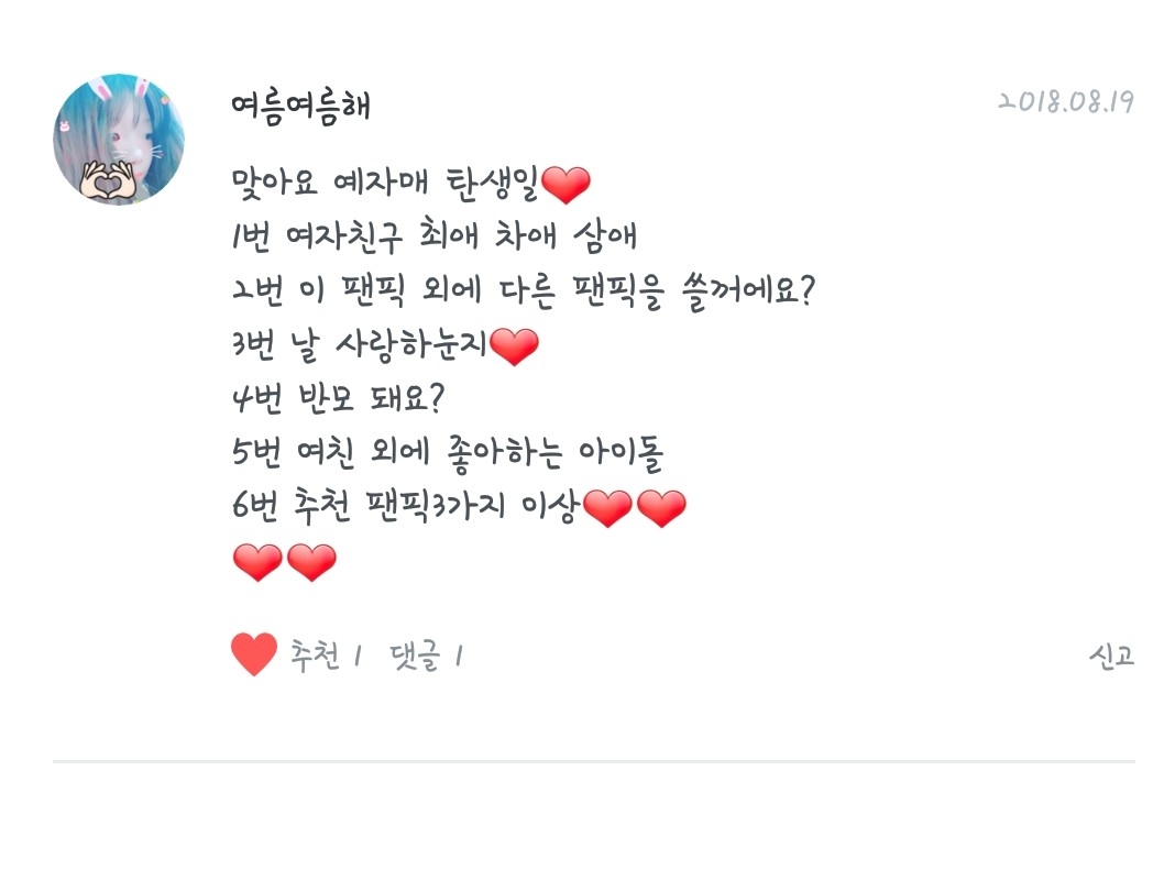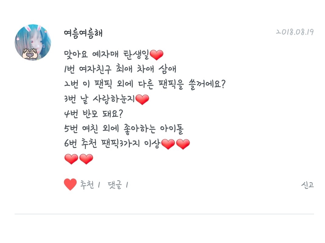 여자친구 최애는?!! 엄지입니다♡ 차애는!유주입니다!♡삼애는소원이 입니다!♡