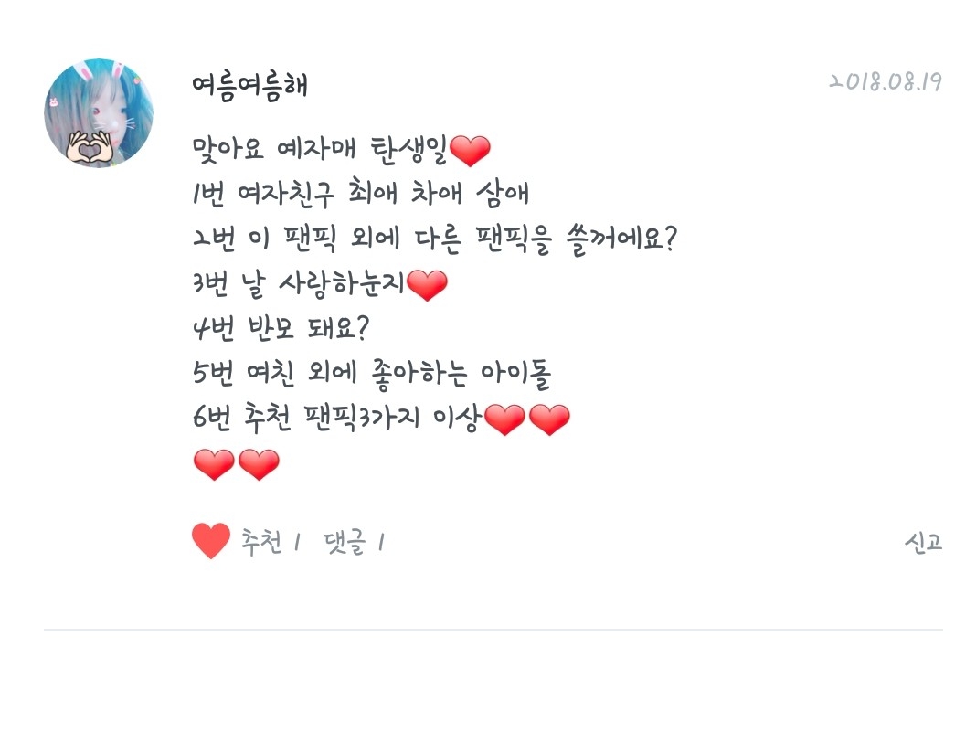 여름 여름해야!! 사룽해! 다른분들도!사랑합니다!!♡