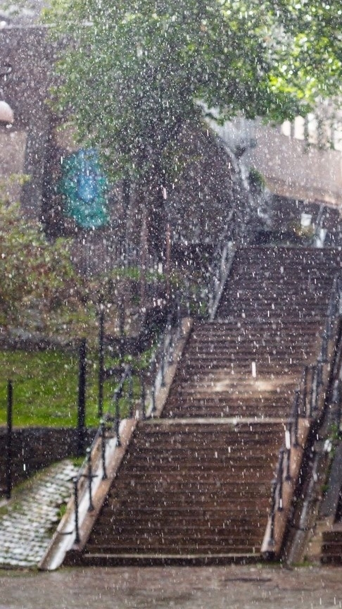 목적지없이 걷다 하늘에서 쏟아지는 비를 흠뻑 맞는 백설