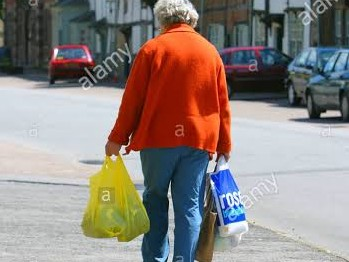 then a old lady passed with some bags. little far away she fall with bags